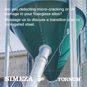 We replaced these units with SIMEZA steel silos. Our manufacturing process utilizes high-grade steel \(S350GD/S450GD\) with heavy galvanization \(Z450/Z600\), ensuring resistance to both atmospheric corrosion and physical stress. Unlike the rigid failure points of aged fiberglass, steel provides the necessary elasticity to manage internal pressure fluctuations during loading and unloading cycles.